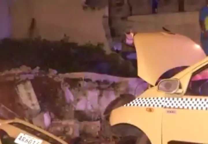 Los hombres a bordo de un taxi se estrellaron contra la cerca de una residencia luego que los policías dispararan a la llanta del vehículo. Al efectuar la revisión del auto se encontró pasamontañas y otros artículos.