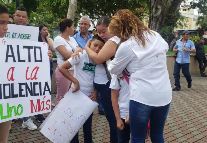 Durante la tarde de este domingo, la familia del joven Acosta se concentró en el parque Miguel de Cervantes Saavedra, en David, donde portaron pancartas con mensajes alusivos a que cese la violencia en la provincia.