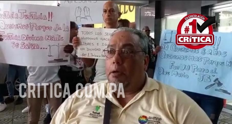 Miembros de la Asociación de los Hombres y Mujeres Nuevos de Panamá desarrollan hoy, jueves, una manifestación pacífica en la parte exterior del Sistema Penal Acusatorio (SPA), plaza Ágora, donde se desarrolla la audiencia de garantías a los tres hombres, presuntamente, vinculados en el homicidio en perjuicio Antonio 'Anthony' Batista, de 21 años, ocurrido en una riña callejera entre Obarrio y Vía Argentina, el pasado 6 de marzo.
