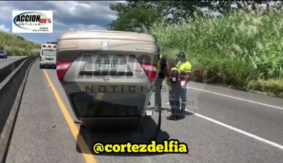 El conductor de un vehículo tipo sedán se volcó a pocos metros de llegar a Cuatro Altos, esto en la autopista Panamá-Colón.