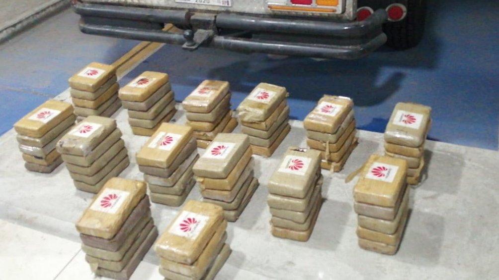 La droga, envuelta en cinta de color chocolate, se encontraba oculta en el vagón del automóvil.