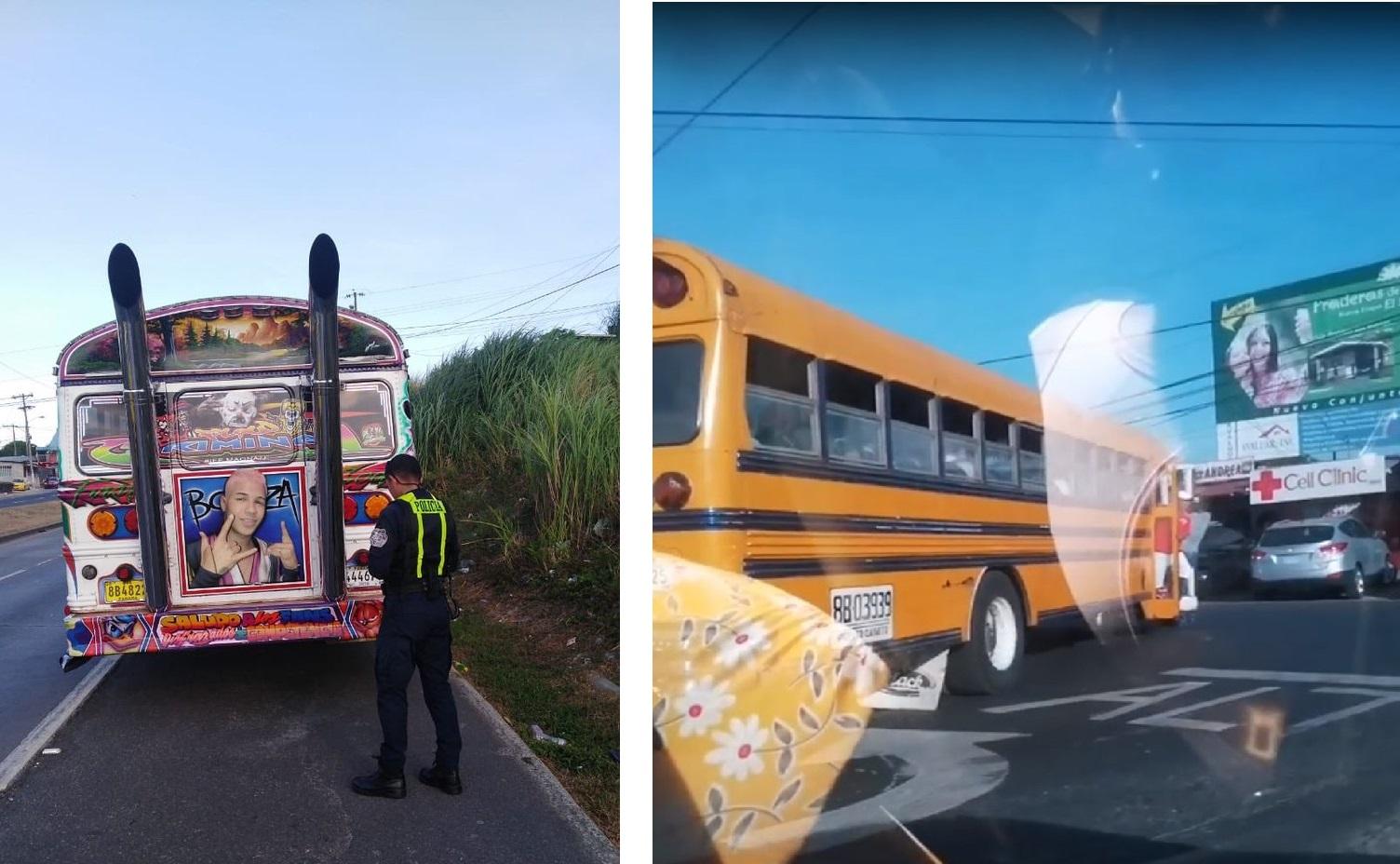 Dos conductores de autobuses que fueron denunciados en redes sociales por manejo desordenado, escándalo en la vía y otras infracciones, mientras transitaban por dos vías distintas de Panamá fueron ubicados por la Dirección de Operaciones del Tránsito de la Policía Nacional y sancionados, según lo que estipula el reglamento de tránsito.