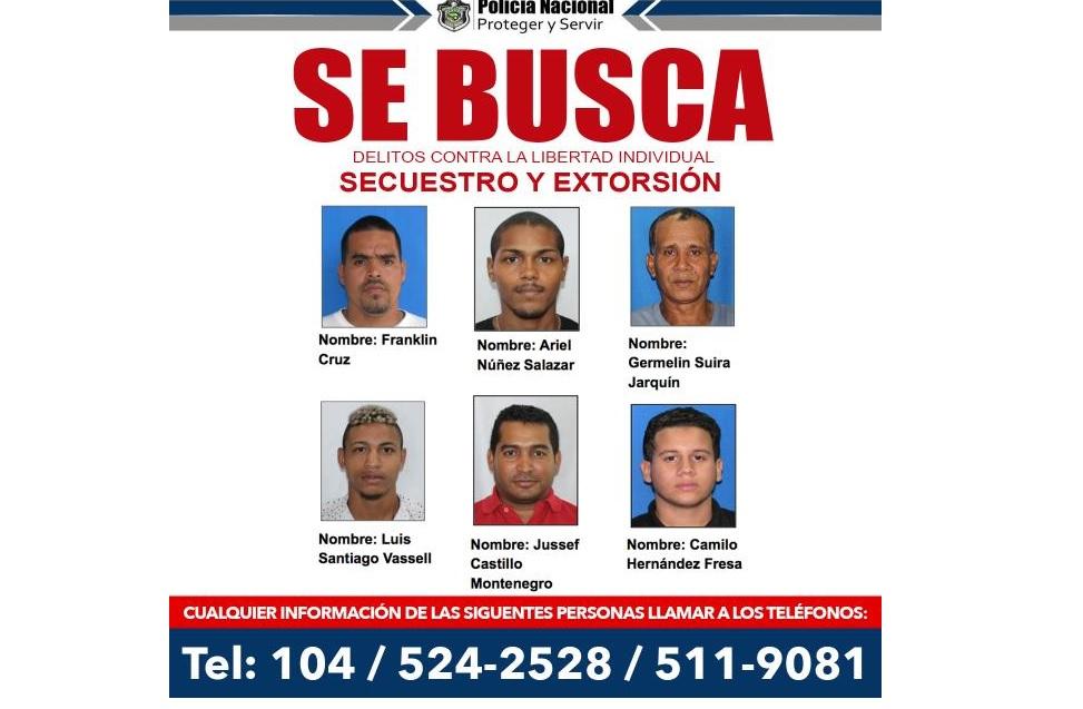 La Policía Nacional de Panamá emitió un nuevo listado de seis personas a las cuales se les requiere por su posible vinculación con el delito de secuestro y extorsión.