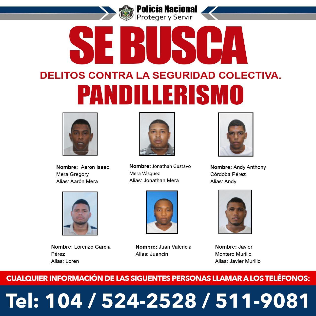 Entre los más buscados se encuentran Aaron Isaac Mera Gregory, Jonathan Gustavo Mera Vásquez, Andy Anthony Córdoba Pérez alias "Andy", Lorenzo García Pérez alias "Loren"; Juan Valencia alias "Juancin" y Javier Montero Murillo.