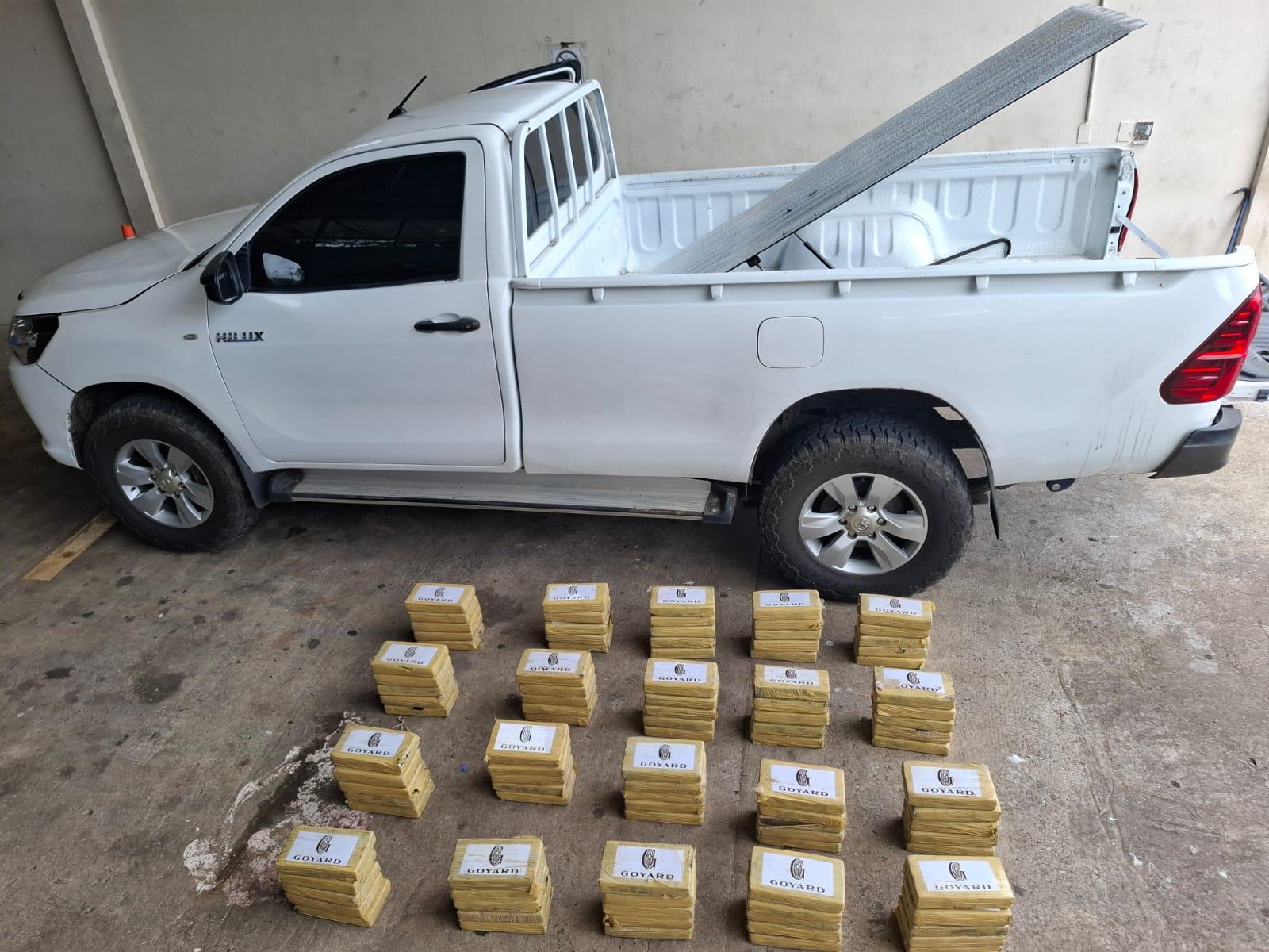 Tras una diligencia de allanamiento y registro a un vehículo en el Puesto de Control Integral de Guabalá, provincia de Chiriquí, unidades policiales dan con la aprehensión de dos personas y el decomiso de 100 paquetes rectangulares, con presunta sustancia ilícita.