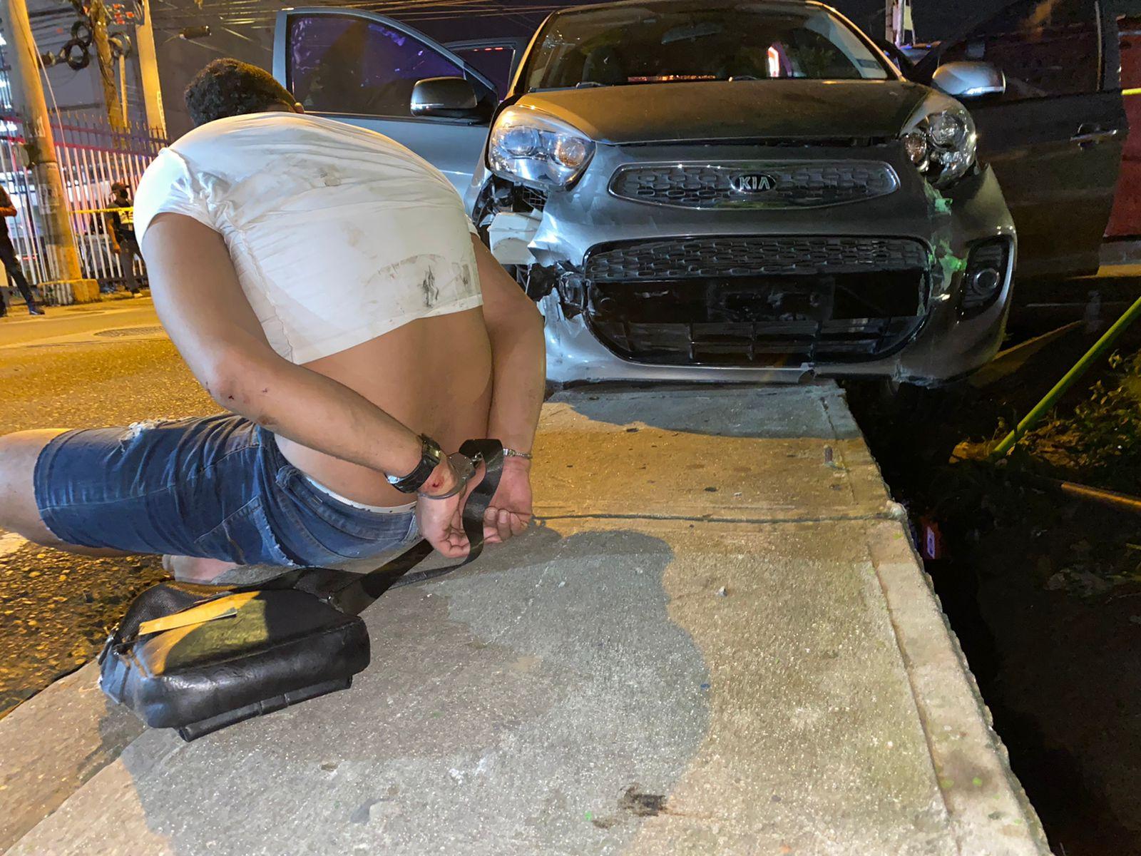 El hecho se registró luego que los sujetos que se mantenían dentro de un vehículo ,en actitud sospechosa, fueran abordados por las unidades policiales, y emprendieran marcha iniciando una persecución desde la calle 8 Río Abajo