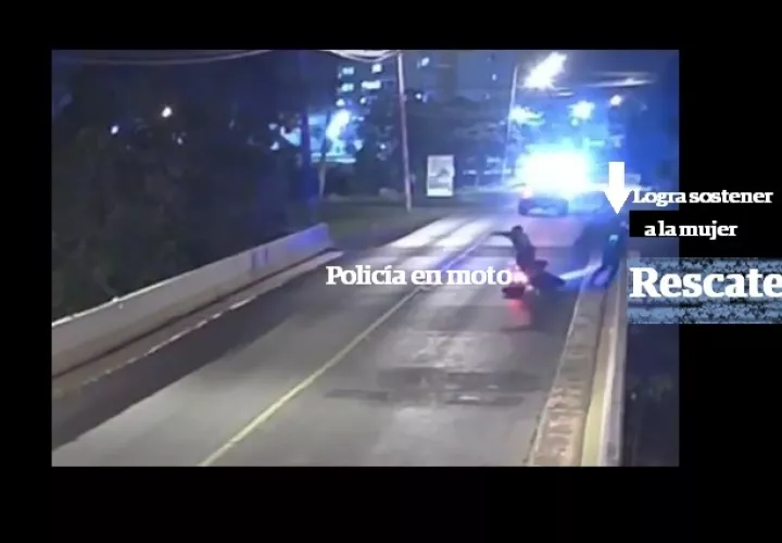 El rescate fue rápido, uno de los uniformados se lanzó de la moto cuando percibió que mujer iba a saltar de la estructura del puente, logrando sostenerla para evitar que cayera.