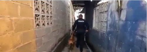 Los uniformados junto a los perros recorrían cada espacio del sector para detectar droga.