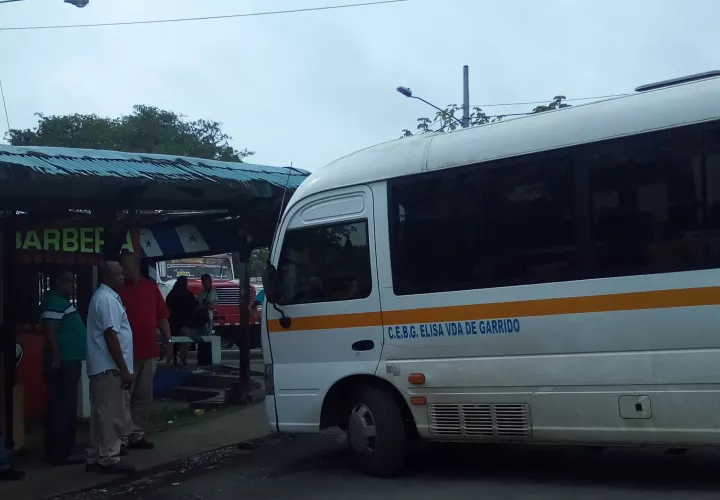 El bus del centro educativo Elisa Viuda de Garrido, ubicado en el corregimiento de Buena Vista, por poco se lleva la parada de la comunidad esta mañana en la carretera Transístmica.