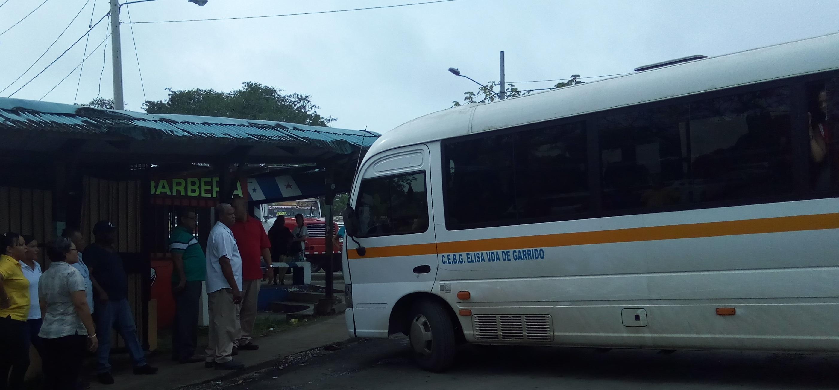 El bus del centro educativo Elisa Viuda de Garrido, ubicado en el corregimiento de Buena Vista, por poco se lleva la parada de la comunidad esta mañana en la carretera Transístmica.