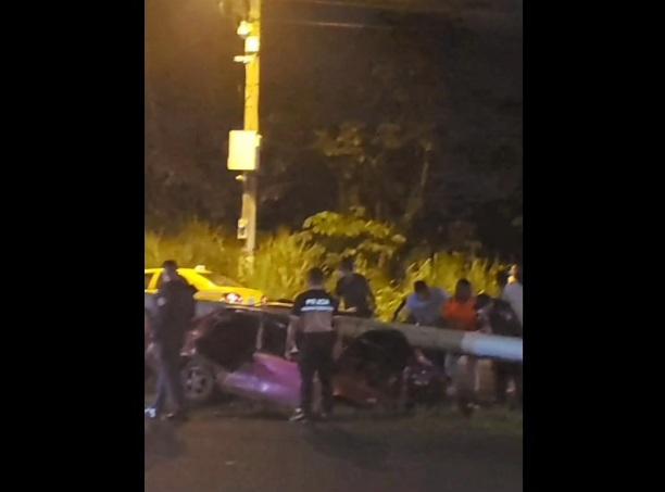 Un poste de tendido eléctrico cayó sobre un auto con varios ocupantes, luego de registrarse un accidente de tránsito en Villa del Caribe, en la provincia de Colón.