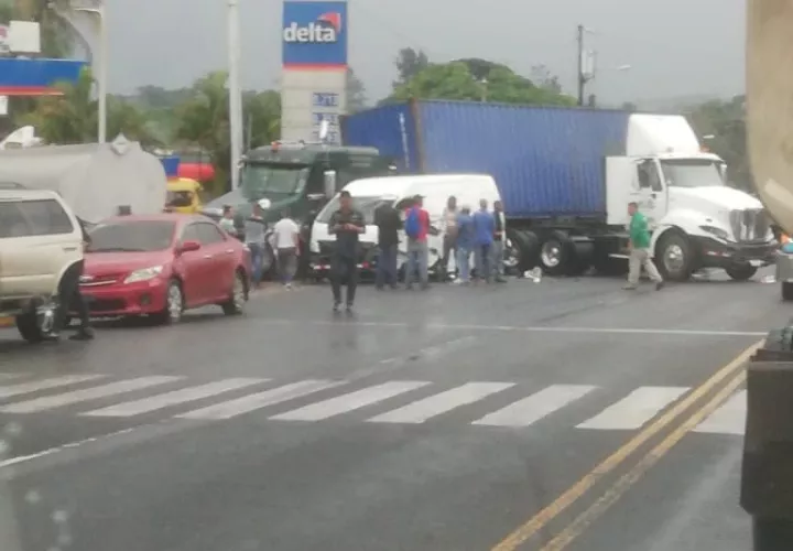 El accidente se dio entre un cabezota que transportaba un contenedor y un vehículo, tipo panel, color blanco.