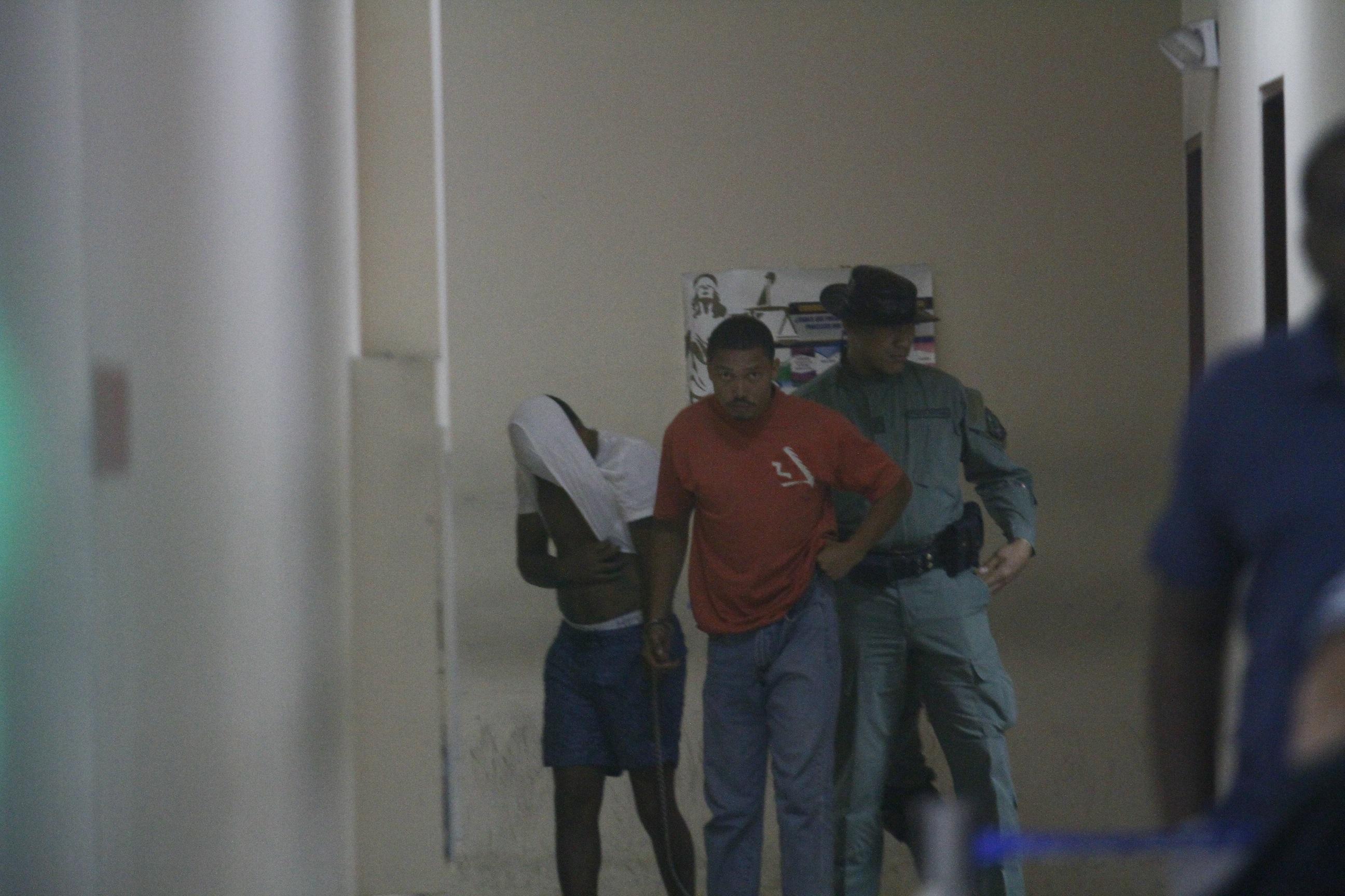 Ambos detenidos llegaron fuertemente custodiados y al notar la presencia de los medios, las unidades de la Policía Nacional les facilitaron un cartucho negro para cubrir sus rostros y evitar que les sacaran los rostros.