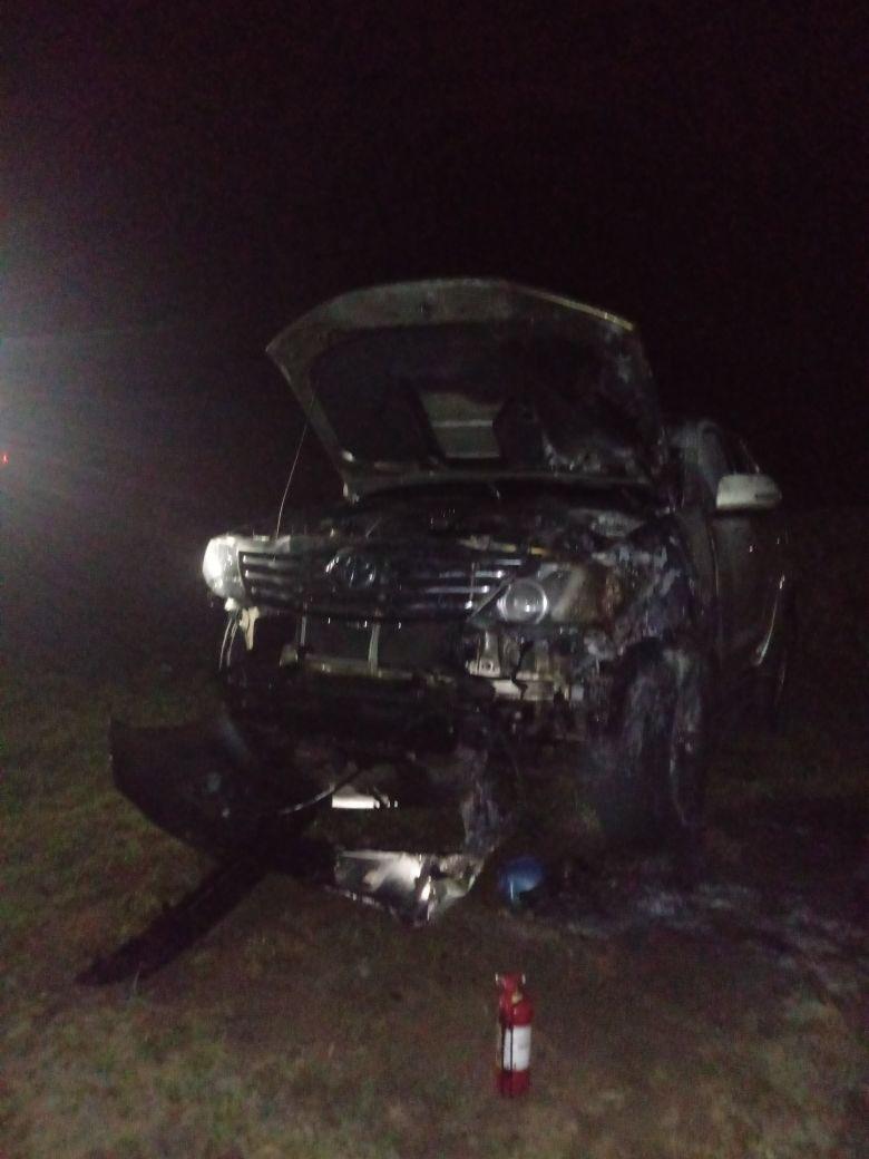 Dijo que muchas personas intentaron sofocar el siniestro, pero gran parte del vehículo fue alcanzado por las llamas. La camioneta presenta daños en el motor y otras partes.