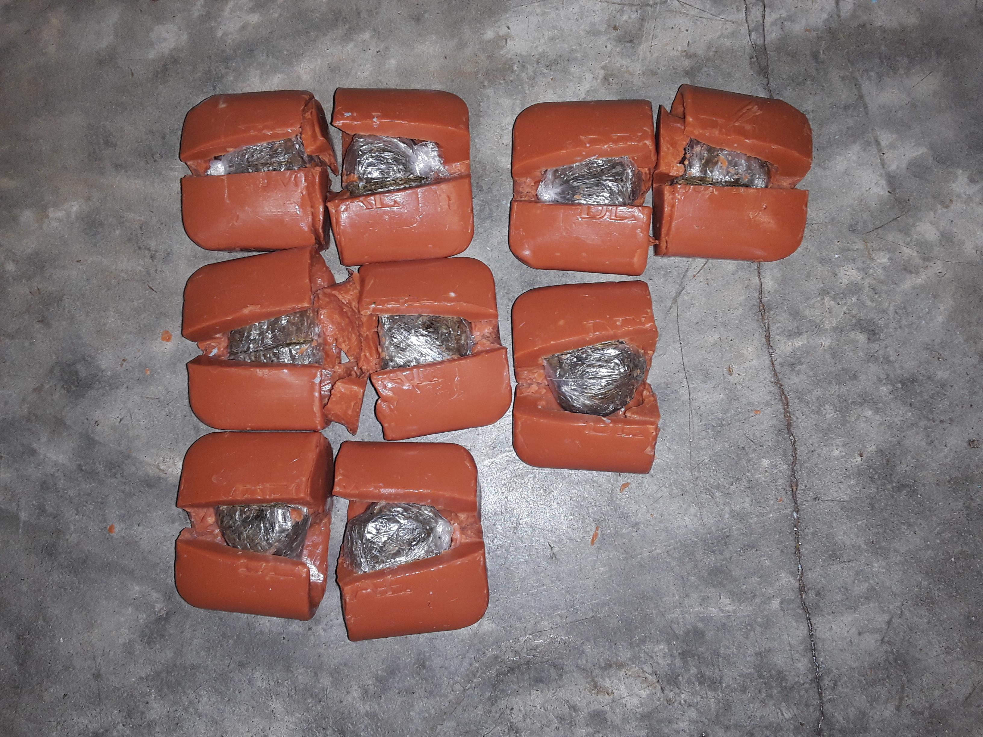 Y es que al momento de la minuciosa revisión al visitante se le detectó nueve envoltorios de marihuana dentro de cuatro jabones de barra.