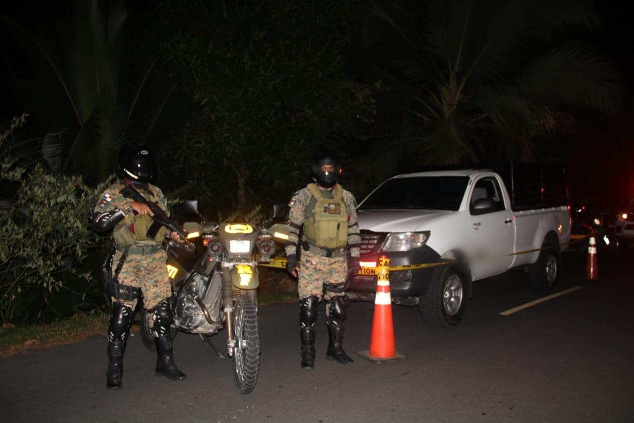"Una vez recibimos la alerta procedimos al bloqueo de los puntos que ya hemos identificado como rutas que son utilizadas por estos sujetos para llevar los vehículos hurtados y robados a territorio costarricense, siendo en el sector de Canoas Arriba en un punto de control que se observa el vehículo en marcha a toda velocidad, dándose la persecución y posterior captura", expresó el mayor Alexander Samaniego, del grupo de repuesta motorizada de Senafront.