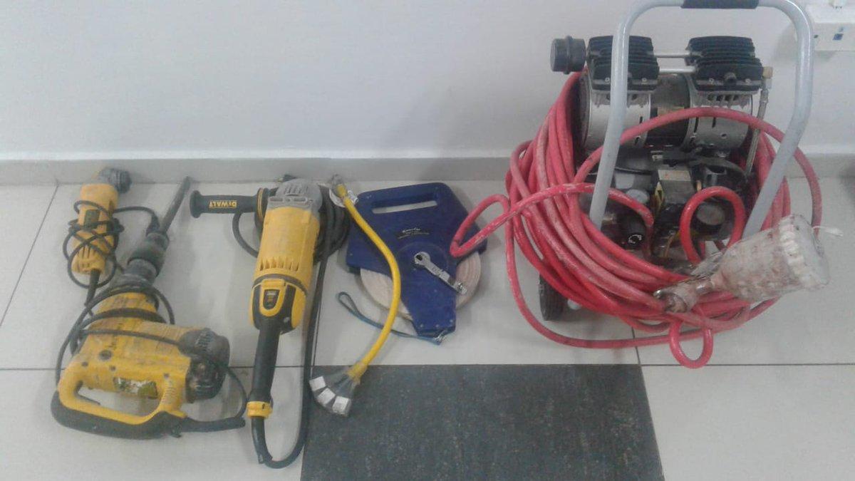 Los agentes de la DIJ mediante diligencia de allanamiento en casa , ubicada en el sector de Altos del Tecal, encontraron y recuperaron herramientas como: compresor de pintura, ligadora, talador y cinta de medir.