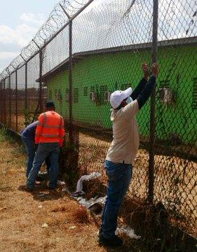En la cárcel La Joya, localizada en Pacora, cuadrillas del Sistema Penitenciario Nacional realizan trabajos de iluminación y restauración de la cerca perimetral.