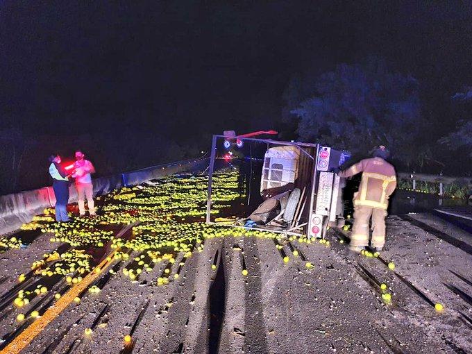Reguero de naranjas tras vuelco de camión