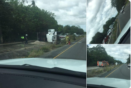 Reguero de tierra por vuelco de camión en Coclé