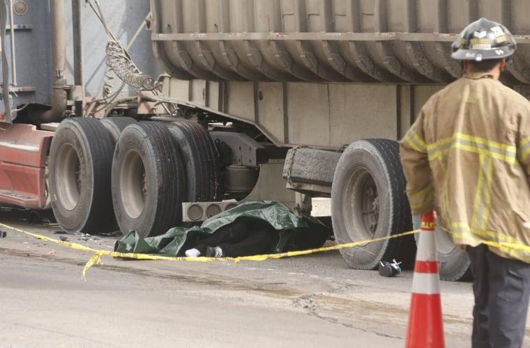 El conductor del camión no tuvo tiempo siquiera para esquivarlo. Las llantas pasaron por encima de la cabeza y torso del motociclista, y su muerte fue inmediata. Foto: Landro Ortiz