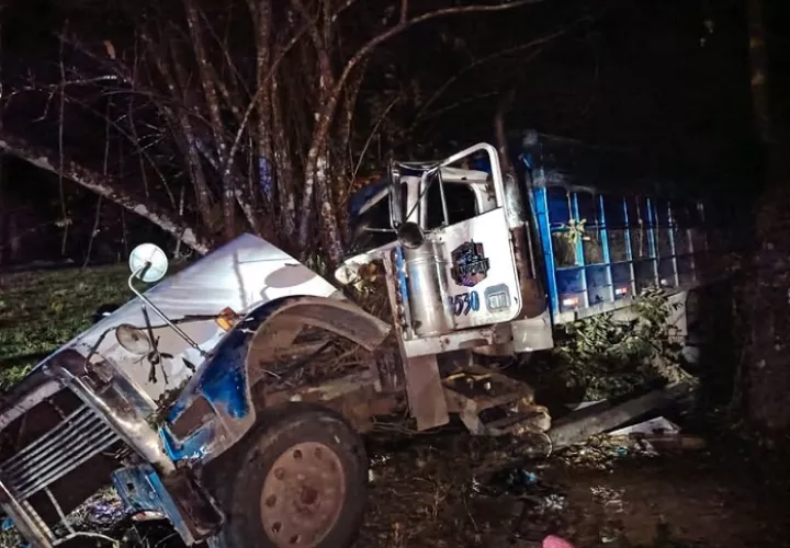 Según confirmó el Benemérito Cuerpo de Bomberos, el camión —del tipo que se utiliza para trasladar ganado— chocó contra un poste y un árbol, donde quedó incrustado del lado del pasajero.