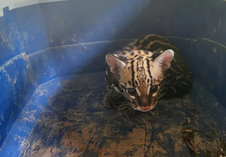 Un ejemplar de ocelote o manigordo fue rescatado por funcionarios del Ministerio de Ambiente (MiAMBIENTE) en la comunidad de Quebrada Honda, Zapallal en Santa Fe, Darién, luego de que se recibiera información sobre una familia de esta especie que se mantenía en una residencia.