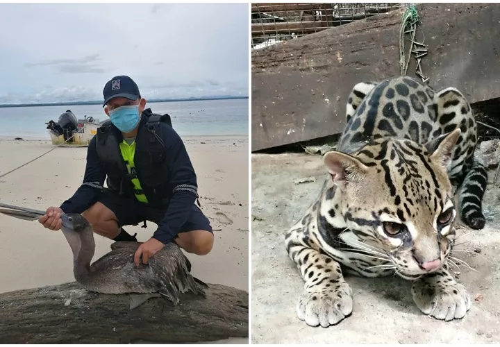 Rescatan ocelote y pelícano en las costas de Pedasi