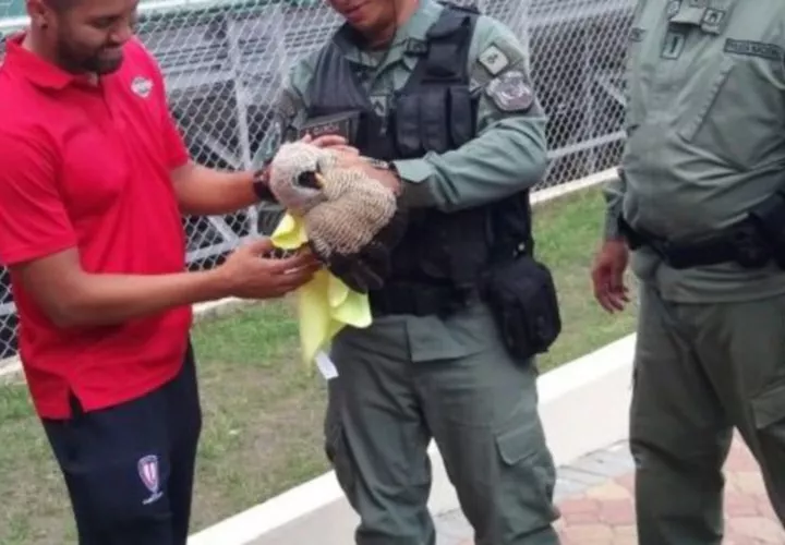 Un pichón de búho fue rescatado por los efectivos de la Unidad Ecológica de la Policía Nacional y funcionarios del Ministerio de Ambiente, al encontrarse atrapado dentro de los predios de la cancha sintética del sector de Amador, corregimiento de El Chorrillo.