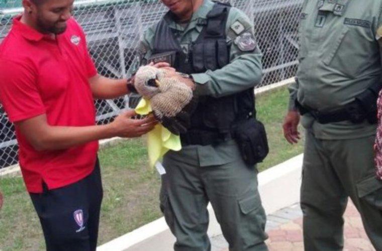 El rescate se realizó ayer martes, luego de que niños y residentes dieran aviso a los efectivos de la Unidad Preventiva Comunitaria de la presencia del ave, por lo que estos dieron aviso a los policías vinculados al tema ambiental.