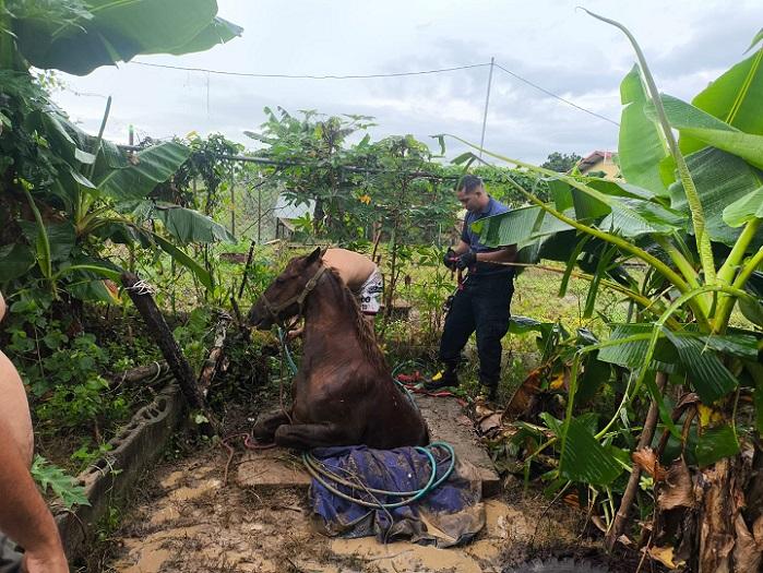 Panamá- ¡Insólito! Un caballo se cayó accidentalmente en una fosa séptica al aire libre ubicada en una residencia en Las Tablas, provincia de Los Santos.