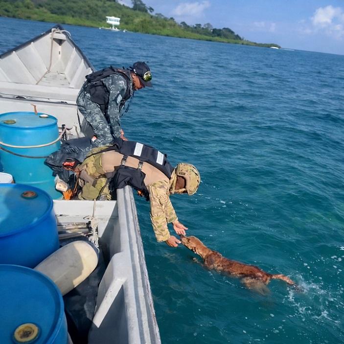 Panamá- Agentes del Servicio Nacional Aeronaval (SENAN) rescataron un perro que estaba nadando en el mar frente a las costas del distrito de Portobelo, en la Costa Arriba de Colón.