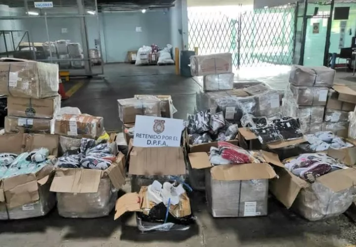 Inspectores de Aduanas retuvieron 21 bultos con mercancía, presuntamente, falsificada que venían en tránsito desde Colombia con destino a Costa Rica, en el área de carga del Aeropuerto Internacional de Tocumen.