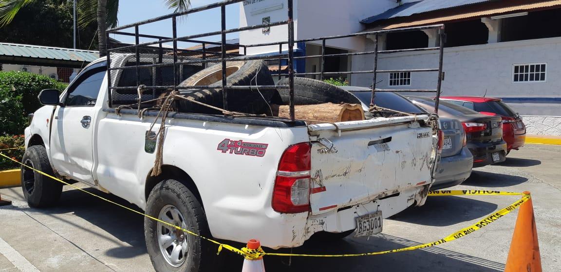 Un vehículo tipo pickup cargado con tucas de madera de Cocobolo recién talada, fue retenido y trasladado a la sede de la Policía Nacional de Las Tablas, mientras que dos personas fueron aprehendidas por este caso.