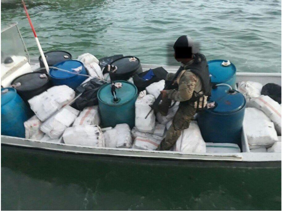 Unidades del Servicio Nacional Aeronaval (Senan) retuvieron una lancha rápida con presunta droga y armas de fuego en Bocas del Toro.