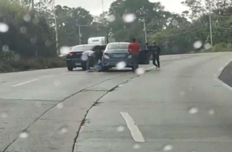 Como un robo de película, tres delincuentes interceptaron un vehículo, bajan a sus ocupantes a uno de los cuales amenazan con un arma de fuego que le apunta en la cabeza. El hecho se da a plena luz del día y en una avenida transitada y rápida: la vía Centenario cerca al estadio Rod Carew.