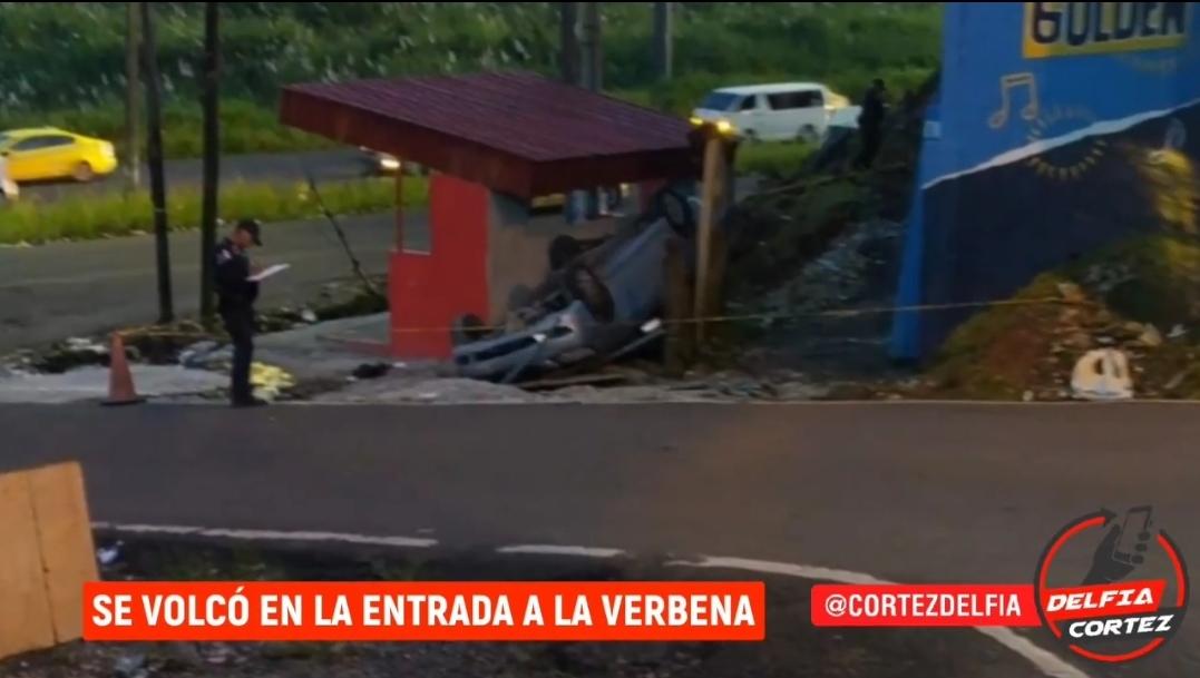 Un delincuente asaltó a una familia en Nueva Primavera, Colón, se llevó el auto de las víctimas y terminó volcado en la entrada a La Verbena tras una persecución policial.