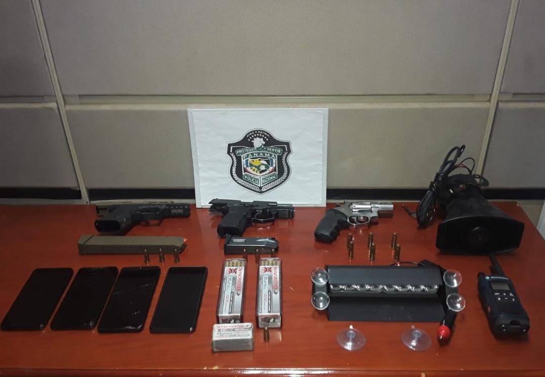 En na residencia en el corregimiento de Chiriquí, ubicaron tres armas de fuego, dos pistolas, un revólver , ambos calibre 22, municiones, luces, bocinas de escolta, radio portátil y cuatro celulares.