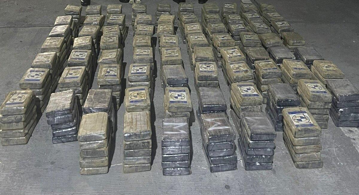 La droga estaba dentro de un contenedor, donde se encontraron 11 maletines color negro, que en su interior tenían los paquetes forrados en color crema e identificaciones circulares.