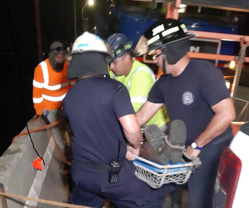 Los "camisas rojas" con una grúa lograron extraer al ciudadano, que en el momento del accidente desarrollaba trabajos en la vía.