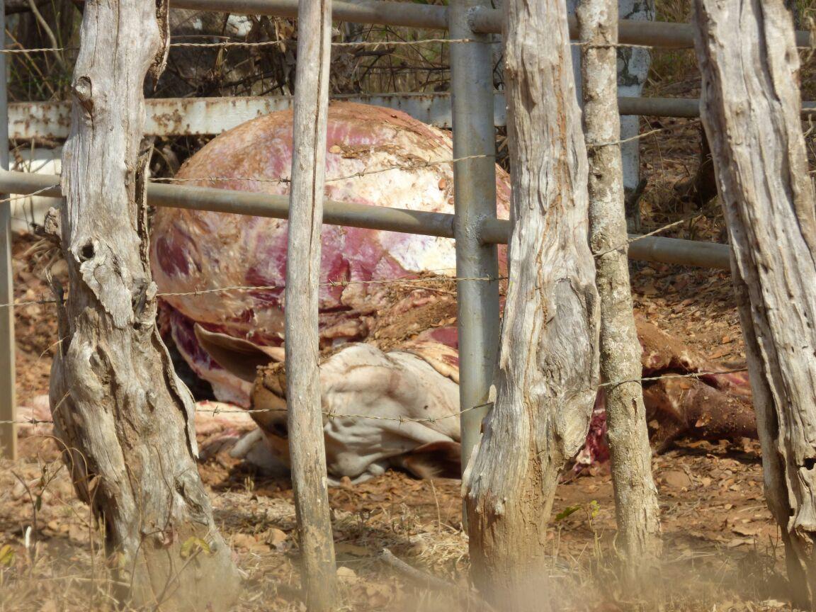 En el lugar quedaron los restos del toro que no pudieron llevarse, y mucha carne desperdiciada, así como los restos de sangre producto del sacrificio ilegal del animal.