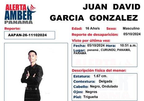 Juan David García, un adolescente de 16 años, se encuentra desaparecido desde el pasado viernes, lo que ha llevado a la activación de la Alerta Amber para facilitar su localización.