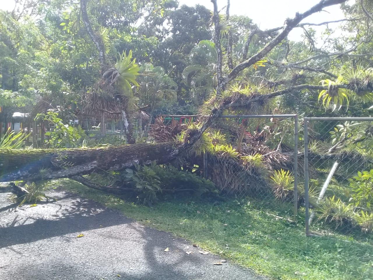 El árbol, también afectó parte del tendido eléctrico del El Cacao centro, dejando sin suministro de energía al poblado.