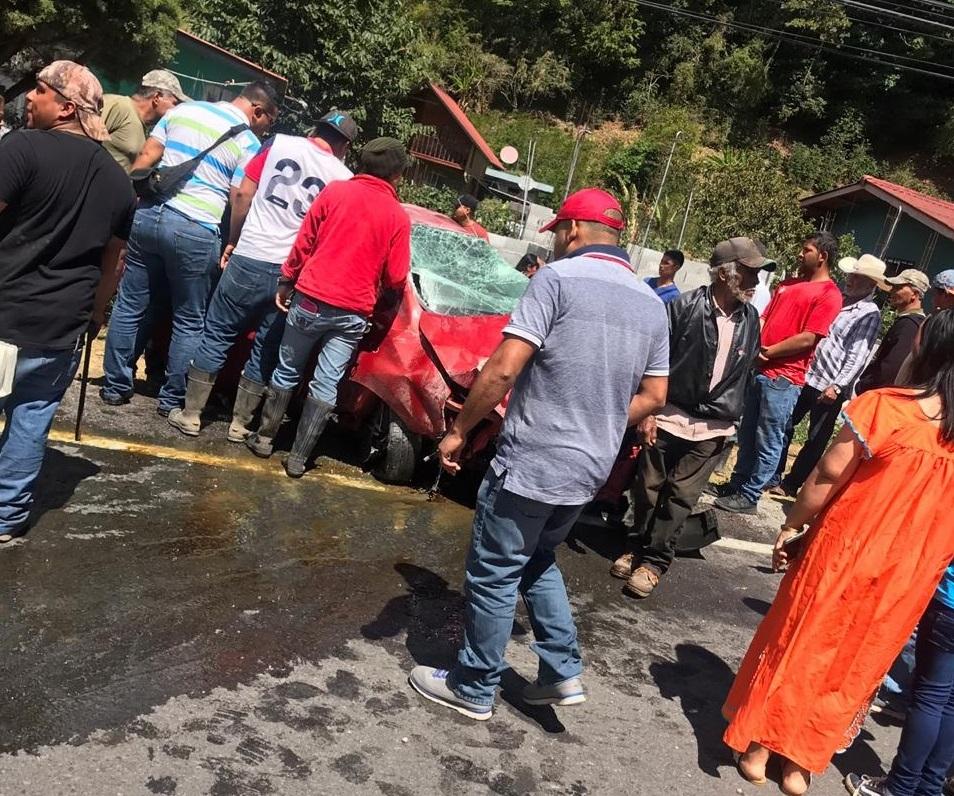 El hecho se tránsito, tipo choque con objeto fijo, se registró cuando la conductora del vehículo perdió el control y cayó a la cuneta, quedando las tres femeninas que iban dentro con algunas heridas.