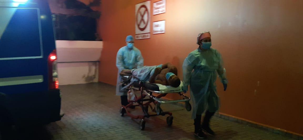 Personal de un servicio de ambulancia se encargó de trasladar al herido hacia el Hospital Santo Tomás.