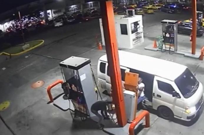 Una cámara de seguridad captÓ a malhechores hurtando una máquina de recarga en una estación de combustible ubicada en el sector de Ojo de Agua, San Miguelito.