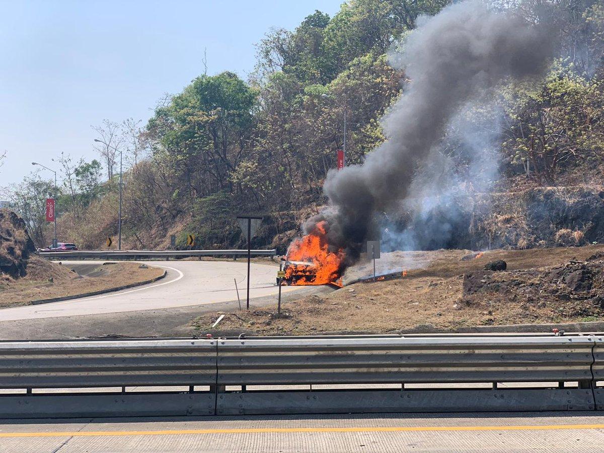 Etiquetas[VÍDEO] Auto se incendia en la entrada del Corredor Norte, a la altura de Centennial Plaza en dirección a Panamá Norte precaución en esta ruta. pic.twitter.com/x1izIO4s2I — Tráfico Panamá (@TraficoCPanama) 12 de abril de 2019