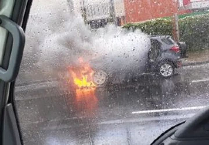 Un auto se incendió hoy en la vía Israel, a la altura del centro comercial Multiplaza, en dirección a Panamá Viejo .
