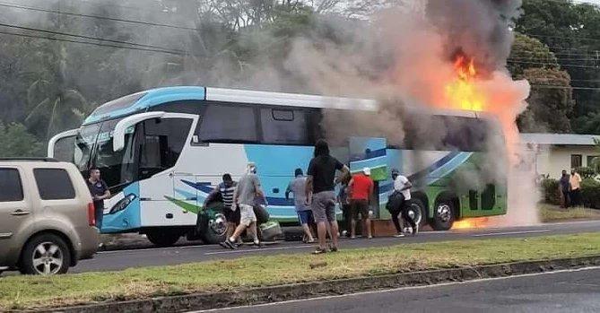 Se prende bus de la ruta Panamá- Bocas del Toro en Sajalices