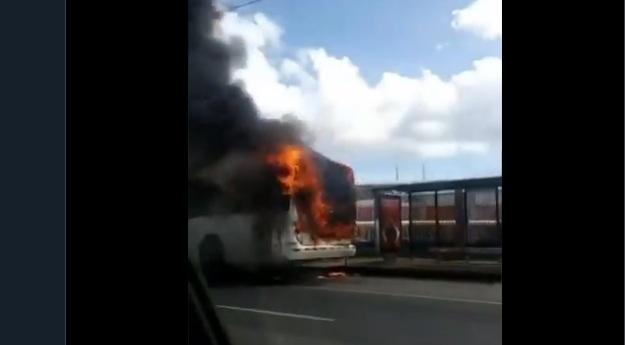 #SucesosCri Se incendia un metrobús en la avenida José Agustín Arango, a la altura del estadio Rommel Fernández. Tráfico Panamá.